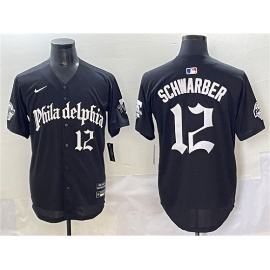 >Men's Philadelphia Phillies #12 Kyle Schwarber Black Gothic Vapor Limited Stitched Jersey
