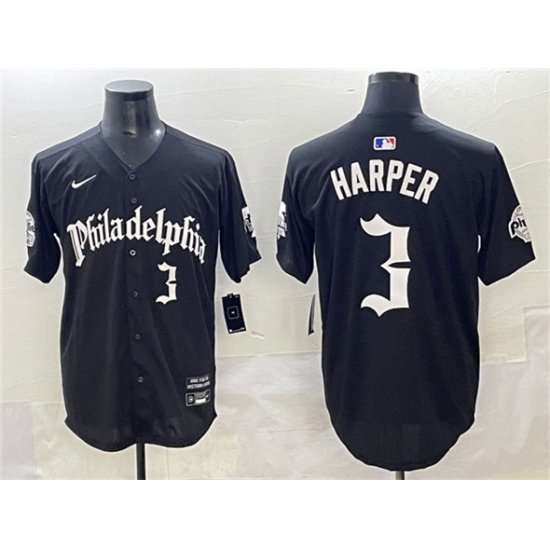 Men's Philadelphia Phillies #3 Bryce Harper Black Gothic Vapor Limited Stitched Jersey