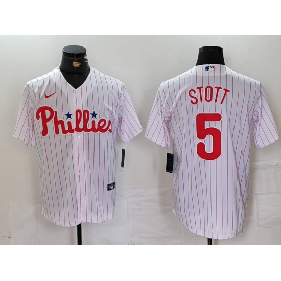 >Men's Philadelphia Phillies #5 Bryson Stott White Pinstripe Stitched Cool Base Jersey