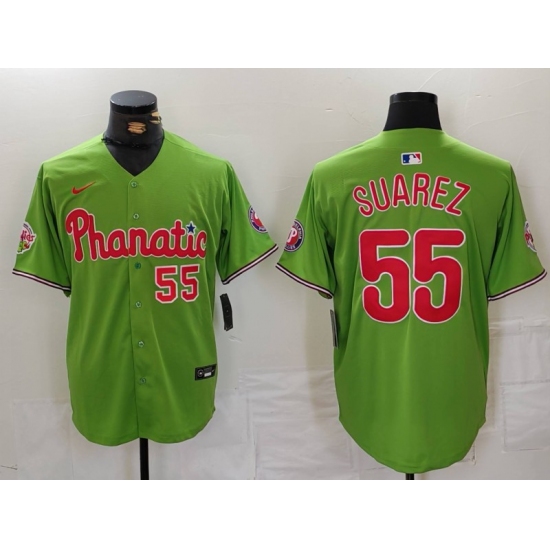 >Men's Philadelphia Phillies #55 Ranger Suarez Number Green With Stitched Cool Base Nike Jersey