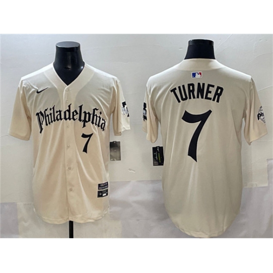 >Men's Philadelphia Phillies #7 Trea Turner Cream Gothic Vapor Limited Stitched Jersey