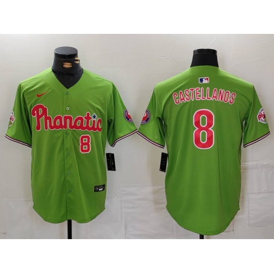 >Men's Philadelphia Phillies #8 Nick Castellanos Number Green With Stitched Cool Base Nike Jersey