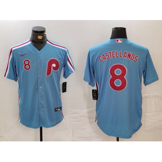 Men's Philadelphia Phillies #8 Nick Castellanos Number Light Blue Cooperstown Cool Base Jersey