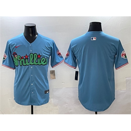 Men's Philadelphia Phillies Blank Blue 2024 City Connect Limited Stitched Jersey