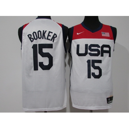 Men's Phoenix Suns #15 Devin Booker White USA Basketball Tokyo Olympics 2021 Jersey