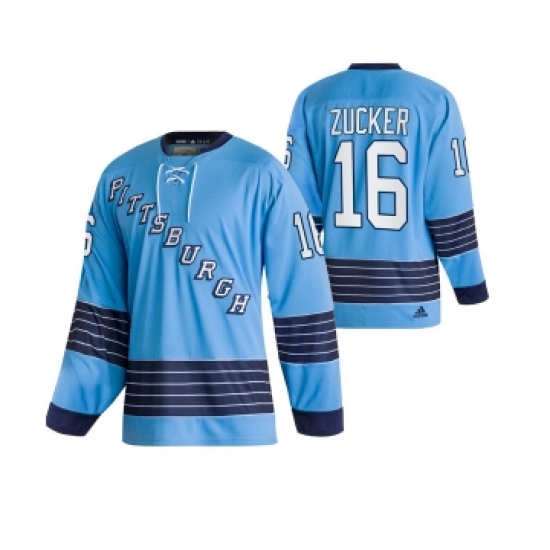 >Men's Pittsburgh Penguins #16 Jason Zucker 2022 Blue Classics Stitched Jersey