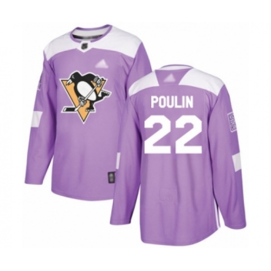 >Men's Pittsburgh Penguins #22 Samuel Poulin Authentic Purple Fights Cancer Practice Hockey Jersey