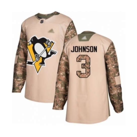 Men's Pittsburgh Penguins #3 Jack Johnson Authentic Camo Veterans Day Practice Hockey Jersey