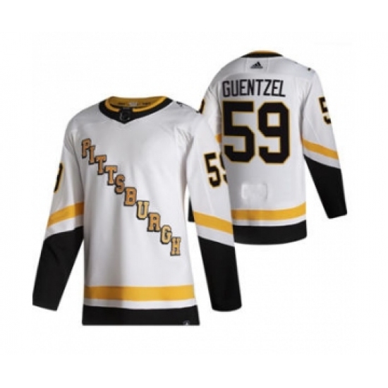 Men's Pittsburgh Penguins #59 Jake Guentzel White 2020-21 Reverse Retro Alternate Hockey Jersey
