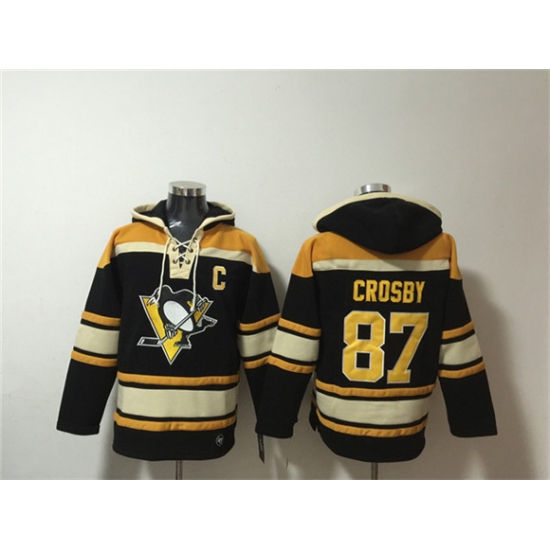 >Men's Pittsburgh Penguins #87 Sidney Crosby Black Lace-Up Pullover Hoodie