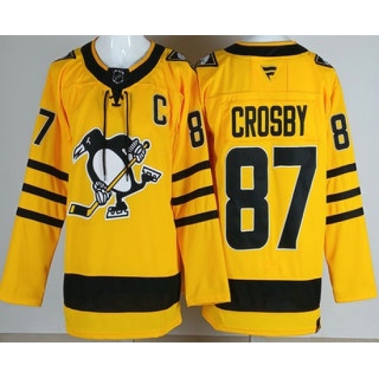 Men's Pittsburgh Penguins #87 Sidney Crosby Yellow Alternate Authentic Jersey
