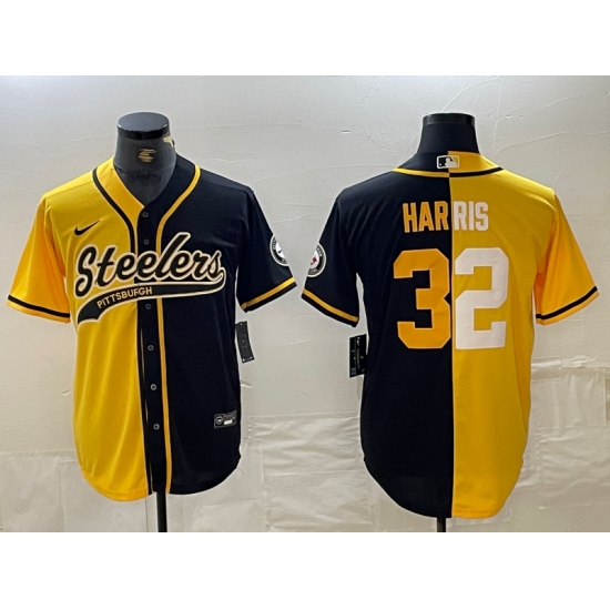 Men's Pittsburgh Steelers #22 Najee Harris Yellow Black Split With Cool Base Stitched Baseball Jersey