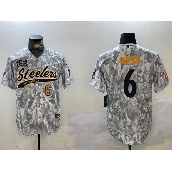 >Men's Pittsburgh Steelers #6 Patrick Queen Arctic Camo 2024 Salute to Service Stitched Baseball Jerseys