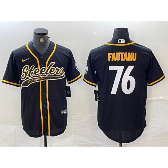 Men's Pittsburgh Steelers #76 Troy Fautanu Black With Cool Base Stitched Baseball Jersey