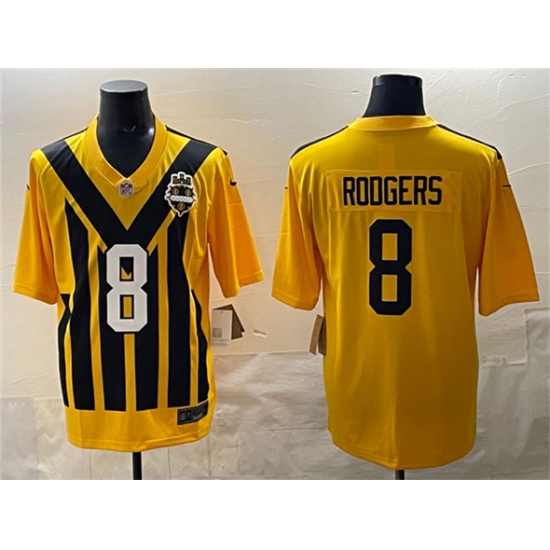 Men's Pittsburgh Steelers #8 Aaron Rodgers Gold 1933 Throwback Alternate Football Stitched Game Jersey