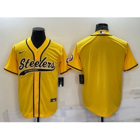 Men's Pittsburgh Steelers Blank Yellow With Patch Cool Base Stitched Baseball Jersey