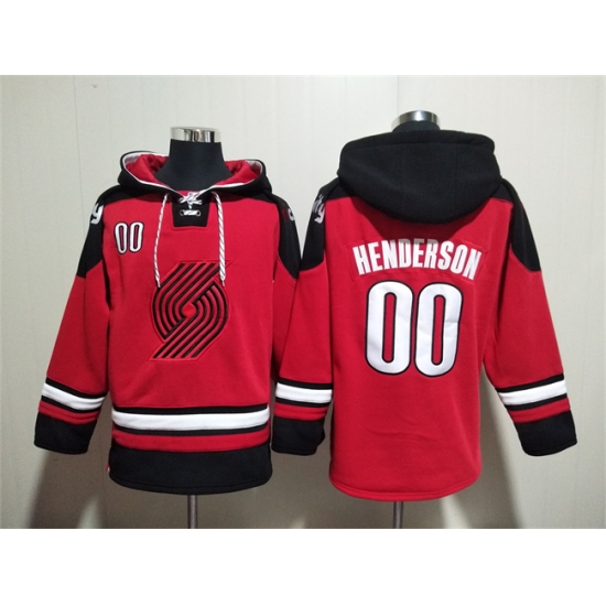 >Men's Portland Trail Blazers #00 Scoot Henderson Red Lace-Up Pullover Hoodie