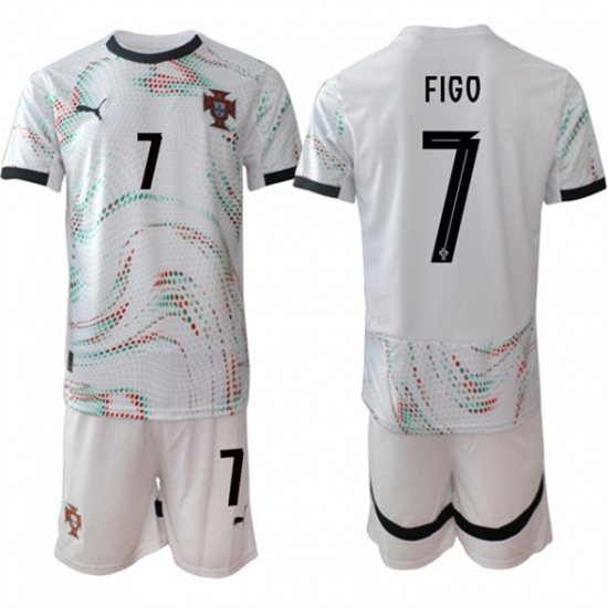 Men's Portugal Team #7 Luís Figo 2025 White Away Soccer Jersey Suit