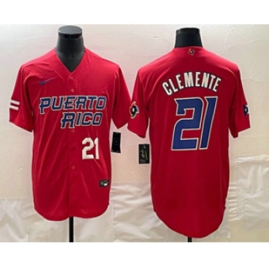 >Men's Puerto Rico Baseball #21 Roberto Clemente Number 2023 Red World Classic Stitched Jerseys