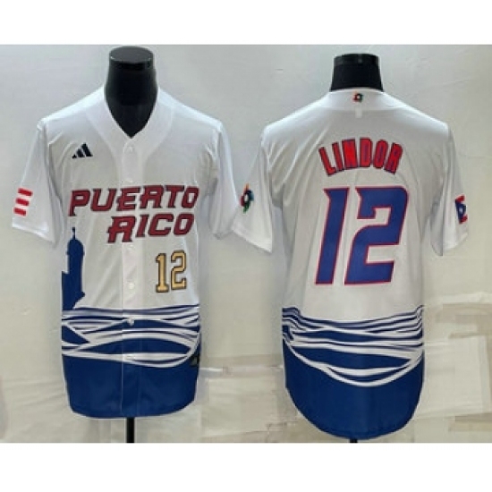 Men's Puerto Rico Baseball #23 Francisco Lindor Number White 2023 World Baseball Classic Stitched Jerseys