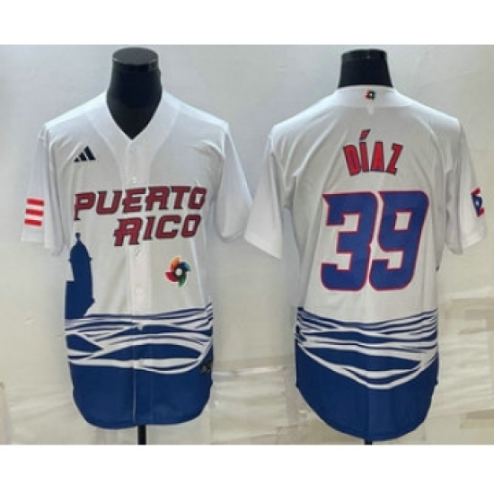 Men's Puerto Rico Baseball #39 Edwin Diaz 2023 White World Baseball Classic Stitched Jerseys