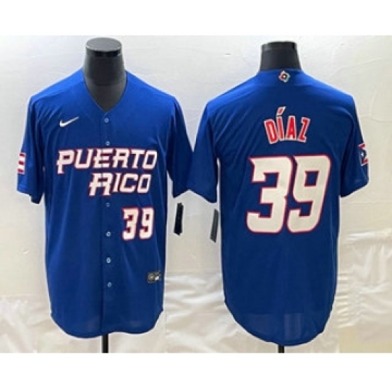 Men's Puerto Rico Baseball #39 Edwin Diaz Number 2023 Blue World Baseball Classic Stitched Jersey