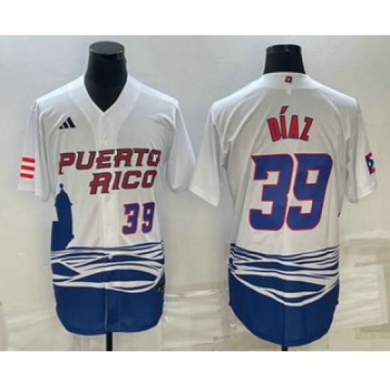 Men's Puerto Rico Baseball #39 Edwin Diaz Number 2023 White World Baseball Classic Stitched Jersey