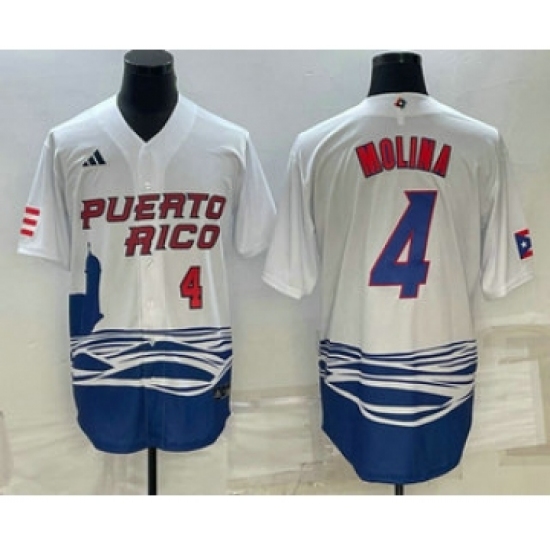 Mens Puerto Rico Baseball #4 Yadier Molina Number 2023 Blue World Baseball Classic Stitched Jersey