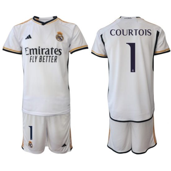 >Men's Real Madrid #1 Courtois 2023-24 White Home Soccer Jersey