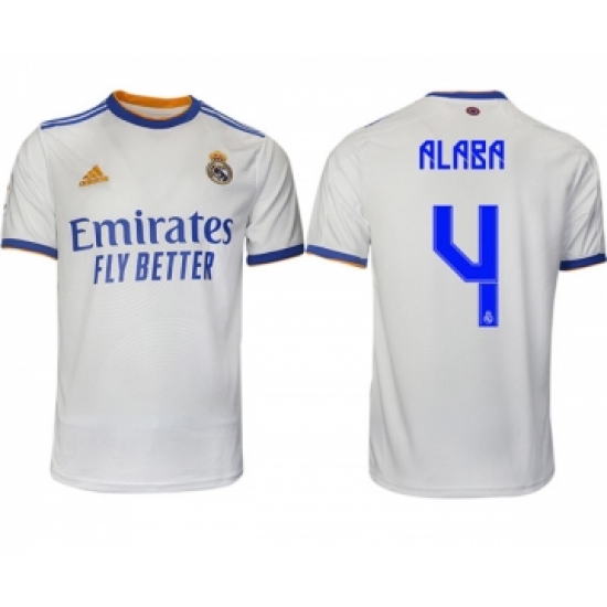 Men's Real Madrid #4 David Alaba 2021-22 White Home Soccer Jersey