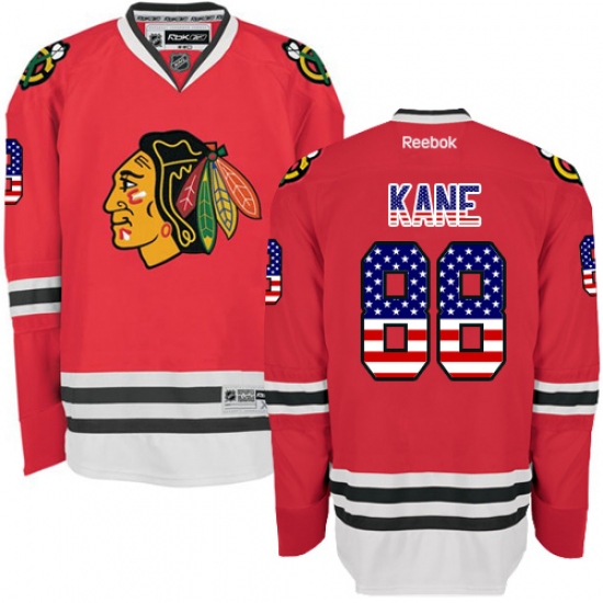 Home>NHL>Chicago Blackhawks>Patrick Kane>Men's Reebok Chicago Blackhawks #88 Patrick Kane Authentic Red USA Flag Fashion NHL Jersey