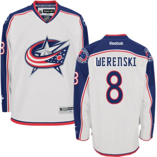 Home>NHL>Columbus Blue Jackets>Zach Werenski>Men's Reebok Columbus Blue Jackets #8 Zach Werenski Authentic White Away NHL Jersey