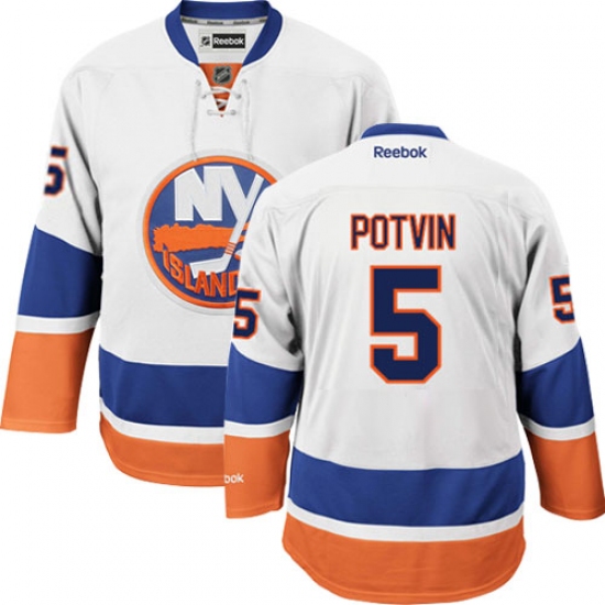 Men's Reebok New York Islanders #5 Denis Potvin Authentic White Away NHL Jersey