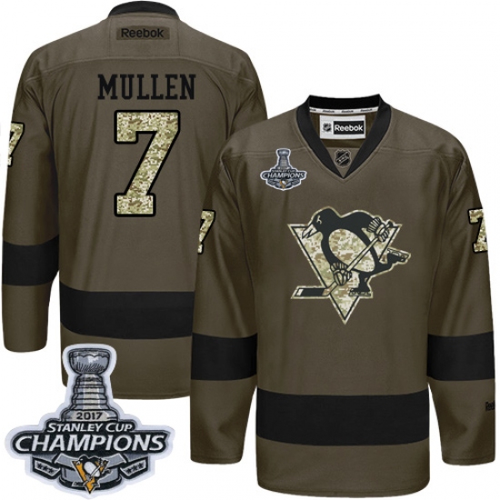 Men's Reebok Pittsburgh Penguins #7 Joe Mullen Premier Green Salute to Service 2017 Stanley Cup Champions NHL Jersey
