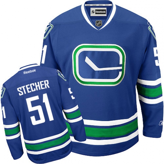 Home>NHL>Vancouver Canucks>Troy Stecher>Men's Reebok Vancouver Canucks #51 Troy Stecher Authentic Royal Blue Third NHL Jersey