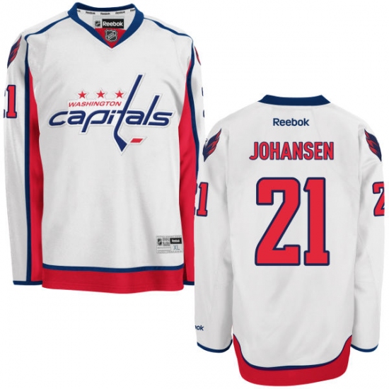 Home>NHL>Washington Capitals>Lucas Johansen>Men's Reebok Washington Capitals #21 Lucas Johansen Authentic White Away NHL Jersey