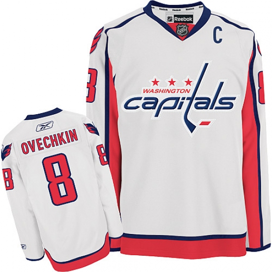 Men's Reebok Washington Capitals #8 Alex Ovechkin Authentic White Away NHL Jersey
