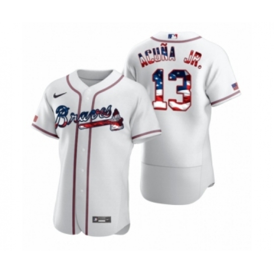 Men's Ronald Acuna Jr. #13 Atlanta Braves White 2020 Stars & Stripes 4th of July Jersey