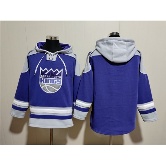 Men's Sacramento Kings Blank Purple Gray Lace-Up Pullover Hoodie