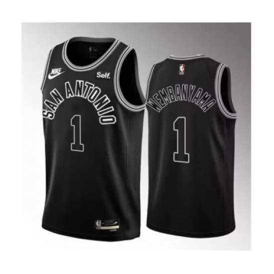 >Men's San Antonio Spurs #1 Victor Wembanyama Black 2022-23 Classic Edition Stitched Basketball Jersey