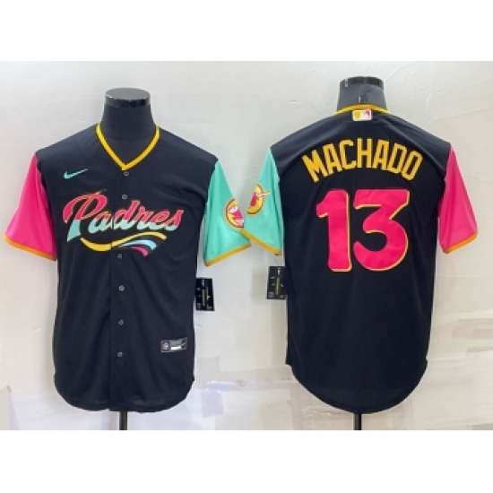 Men's San Diego Padres #13 Manny Machado Black 2022 City Connect Cool Base Stitched Jersey