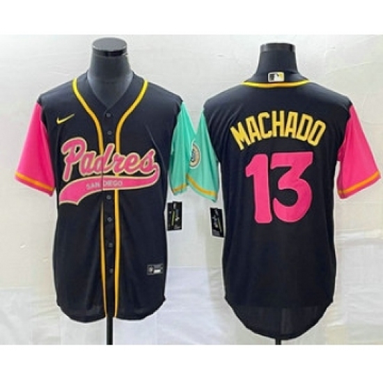Men's San Diego Padres #13 Manny Machado Black NEW 2023 City Connect Cool Base Stitched Jersey 1