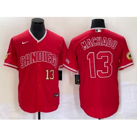 Men's San Diego Padres #13 Manny Machado Number Red NEW 2023 Cool Base Stitched Jersey