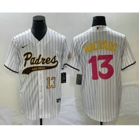Men's San Diego Padres #13 Manny Machado Number White Pinstripe 2023 City Connect Cool Base Stitched Jersey