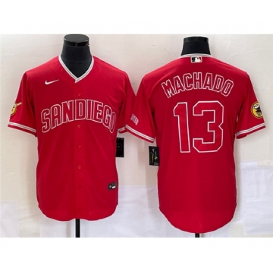 Men's San Diego Padres #13 Manny Machado Red Cool Base Stitched Baseball Jersey