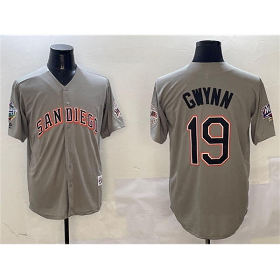 >Men's San Diego Padres #19 Tony Gwynn Gray With Cool Base Stitched Jersey