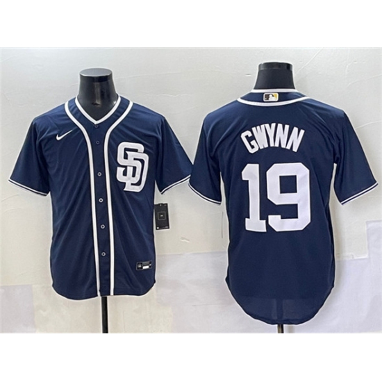 >Men's San Diego Padres #19 Tony Gwynn Navy Cool Base Stitched Baseball Jersey