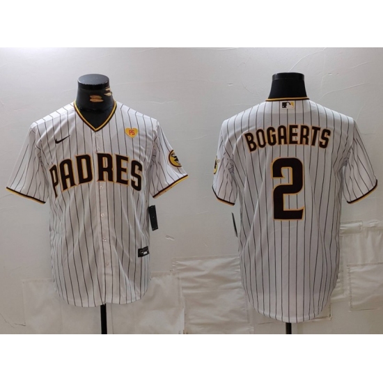 >Men's San Diego Padres #2 Xander Bogaerts White With PS Cool Base Stitched Jersey
