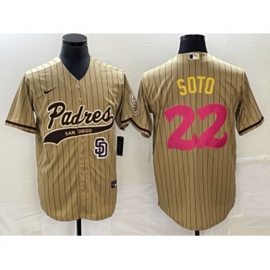 Men's San Diego Padres #22 Juan Soto Tan Pinstripe 2023 City Connect Cool Base Stitched Jersey