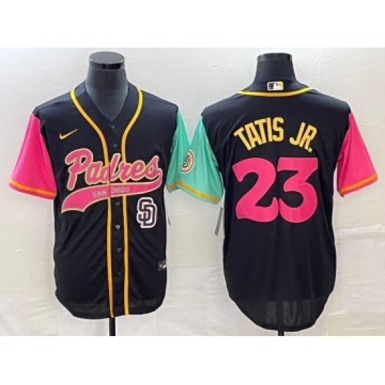 >Men's San Diego Padres #23 Fernando Tatis Jr Black NEW 2023 City Connect Cool Base Stitched Jersey 1